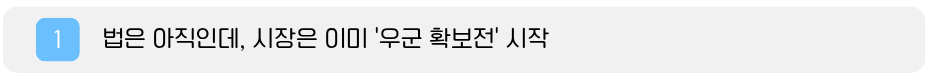 오늘 2편에서는 규제 얘기에서 한 발 내려와서, "현장에서 실제로 누가 누구랑 손을 잡고 있는지" 즉 동맹전·우군 확보전 이야기를 정리해보려고 해요.