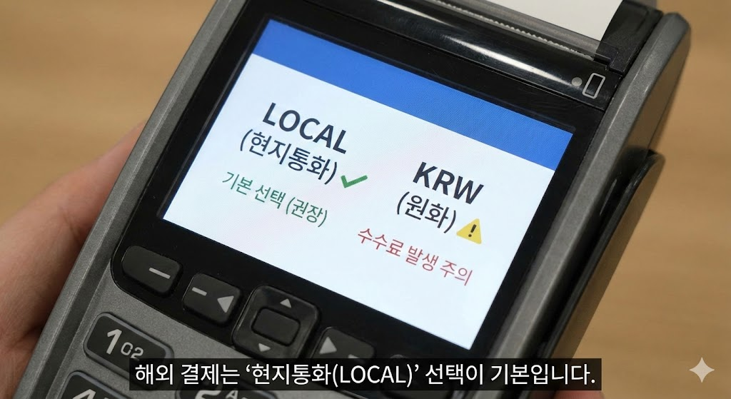 | 해외 오프라인 결제 (식당/마트) | 현지통화로 결제 | 원화(KRW) 결제 (DCC) | DCC는 추가 수수료 3~5% 발생 가능 |